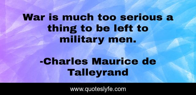 This page presents the quote "War is much too serious a thing to be left to military men.". Author of this quote is Charles Maurice de Talleyrand. This quote is about military, men, serious,.