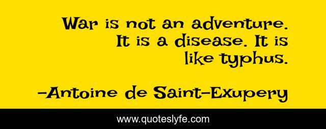 This page presents the quote "War is not an adventure. It is a disease. It is like typhus.". Author of this quote is Antoine de Saint-Exupery. This quote is about realistic, expectations,.