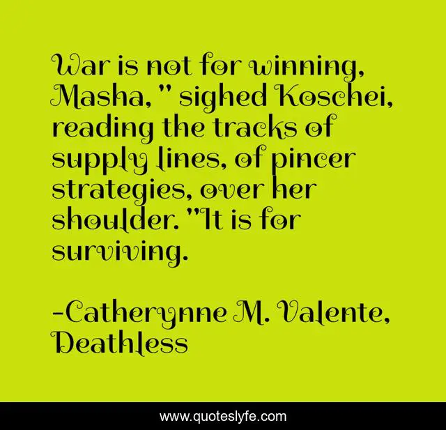 "Catherynne M. Valente, Deathless Quotes." Quoteslyfe.com, 2025. Sat. 06 Dec. 2025. <https://www.quoteslyfe.com/quote/War-is-not-for-winning-Masha-sighed-3023>.