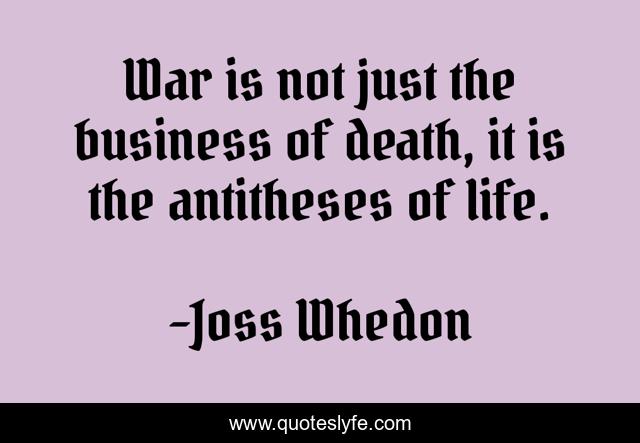 This page presents the quote "War is not just the business of death, it is the antitheses of life.". Author of this quote is Joss Whedon. This quote is about life, death, war,.
