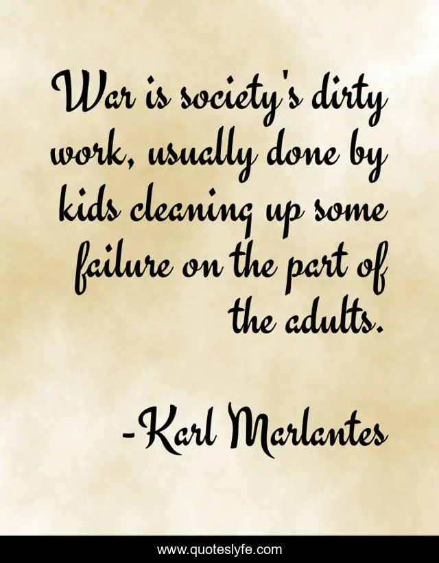 "Karl Marlantes Quotes." Quoteslyfe.com, 2025. Sat. 06 Dec. 2025. <https://www.quoteslyfe.com/quote/War-is-society-s-dirty-work-usually-52433>.