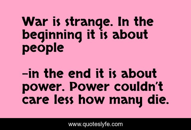 "in the end it is about power. Power couldn’t care less how many die. Quotes." Quoteslyfe.com, 2025. Fri. 05 Dec. 2025. <https://www.quoteslyfe.com/quote/War-is-strange-In-the-beginning-it-52945>.