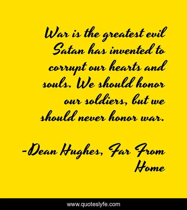 "Dean Hughes, Far From Home Quotes." Quoteslyfe.com, 2025. Mon. 08 Dec. 2025. <https://www.quoteslyfe.com/quote/War-is-the-greatest-evil-Satan-has-52255>.