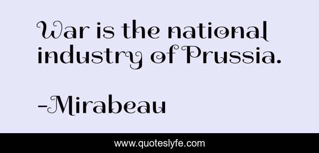 "Mirabeau Quotes." Quoteslyfe.com, 2025. Sun. 07 Dec. 2025. <https://www.quoteslyfe.com/quote/War-is-the-national-industry-of-Prussia-278508>.