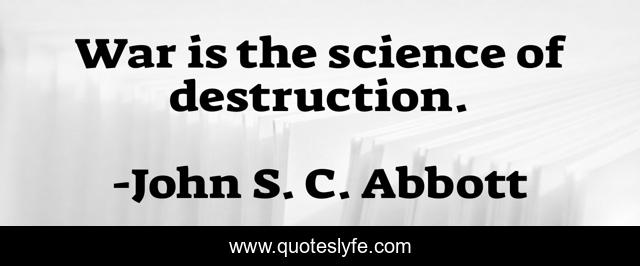 This page presents the quote "War is the science of destruction.". Author of this quote is John S. C. Abbott. .