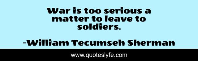 This page presents the quote "War is too serious a matter to leave to soldiers.". Author of this quote is William Tecumseh Sherman. This quote is about soldiers, matter, serious,.
