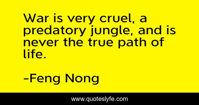 This page presents the quote "War is very cruel, a predatory jungle, and is never the true path of life.". Author of this quote is Feng Nong. This quote is about lessons, life, cruel-people, chinese-novel, chinese-literature, true, war,.