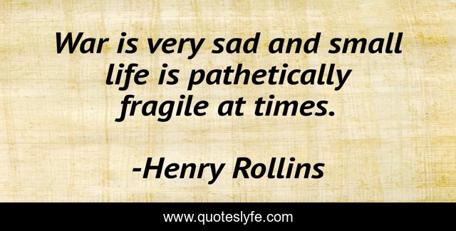 This page presents the quote "War is very sad and small life is pathetically fragile at times.". Author of this quote is Henry Rollins. This quote is about small, life, war,.