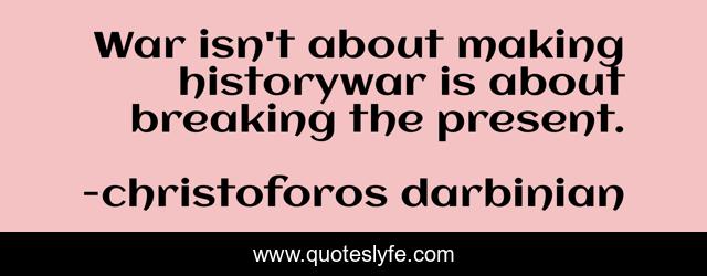 This page presents the quote "War isn't about making historywar is about breaking the present.". Author of this quote is christoforos darbinian. This quote is about peace, deep, liberty, war,.