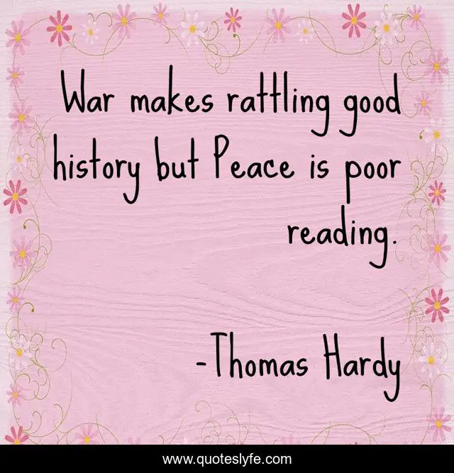 "Thomas Hardy Quotes." Quoteslyfe.com, 2025. Sun. 07 Dec. 2025. <https://www.quoteslyfe.com/quote/War-makes-rattling-good-history-but-Peace-268307>.