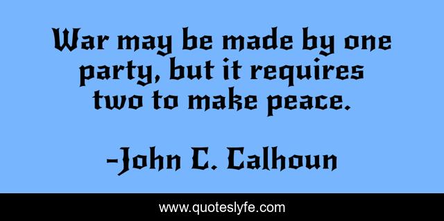 "John C. Calhoun Quotes." Quoteslyfe.com, 2025. Tue. 09 Dec. 2025. <https://www.quoteslyfe.com/quote/War-may-be-made-by-one-party-323665>.
