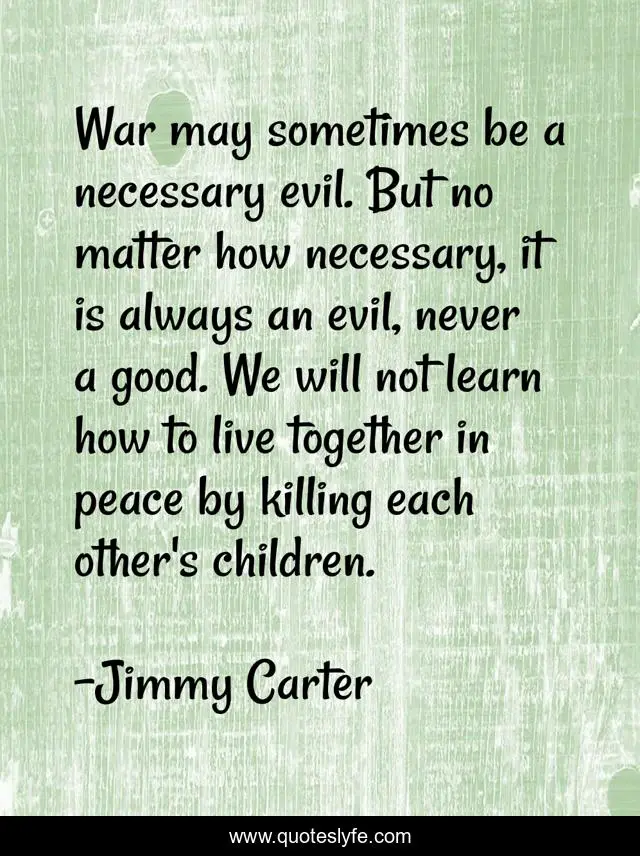 "Jimmy Carter Quotes." Quoteslyfe.com, 2025. Mon. 08 Dec. 2025. <https://www.quoteslyfe.com/quote/War-may-sometimes-be-a-necessary-evil-285565>.