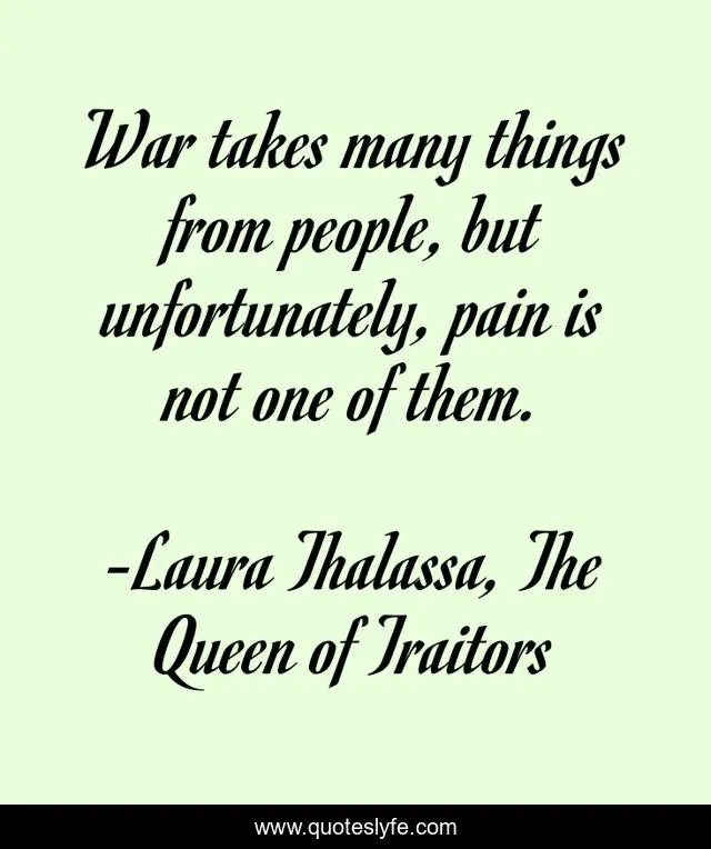 "Laura Thalassa, The Queen of Traitors Quotes." Quoteslyfe.com, 2025. Mon. 08 Dec. 2025. <https://www.quoteslyfe.com/quote/War-takes-many-things-from-people-but-76132>.