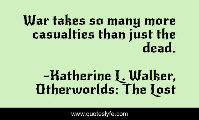 This page presents the quote "War takes so many more casualties than just the dead.". Author of this quote is Katherine L. Walker, Otherworlds: The Lost. This quote is about life, true, sorrow, war,.