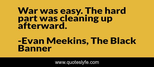 This page presents the quote "War was easy. The hard part was cleaning up afterward.". Author of this quote is Evan Meekins, The Black Banner. This quote is about war, fantasy-fiction, fiction, fantasy, young-adult-fiction, reconstruction, young-adult, young-adult-fantasy,.