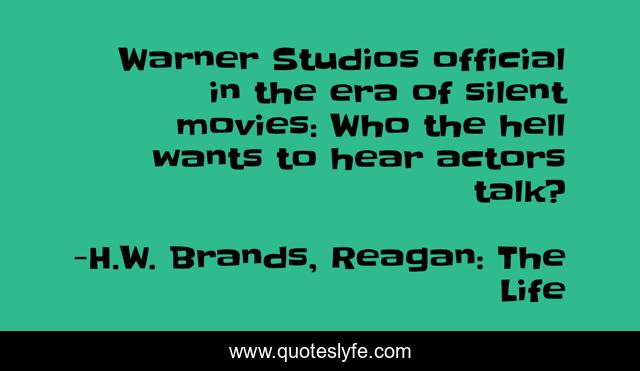 This page presents the quote "Warner Studios official in the era of silent movies: Who the hell wants to hear actors talk?". Author of this quote is H.W. Brands, Reagan: The Life. This quote is about media, technology,.