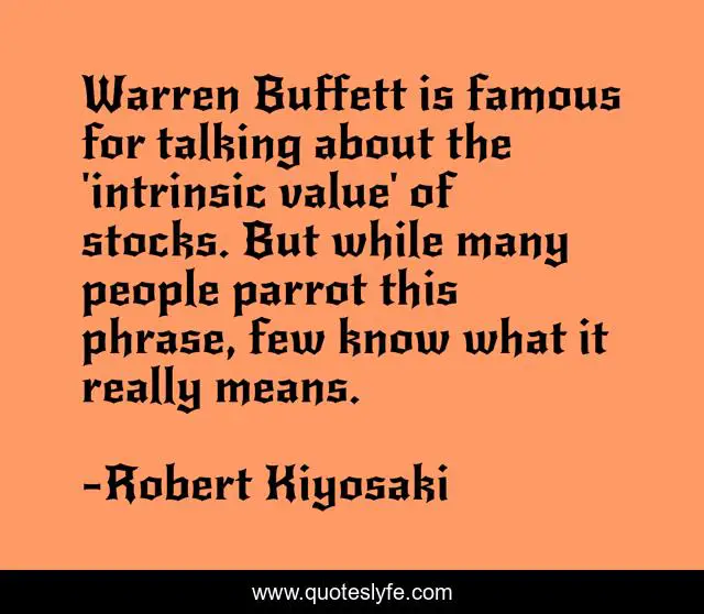 This page presents the quote "Warren Buffett is famous for talking about the 'intrinsic value' of stocks. But while many people parrot this phrase, few know what it really means.". Author of this quote is Robert Kiyosaki. This quote is about value, people,.