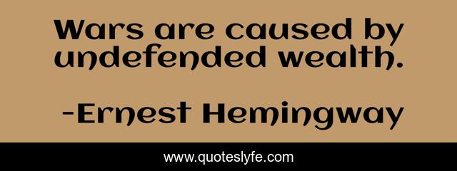 This page presents the quote "Wars are caused by undefended wealth.". Author of this quote is Ernest Hemingway. This quote is about caused, wealth, wars,.