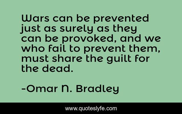 This page presents the quote "Wars can be prevented just as surely as they can be provoked, and we who fail to prevent them, must share the guilt for the dead.". Author of this quote is Omar N. Bradley. This quote is about fail, guilt, dead,.