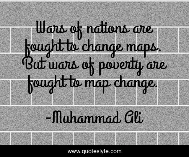 This page presents the quote "Wars of nations are fought to change maps. But wars of poverty are fought to map change.". Author of this quote is Muhammad Ali. This quote is about poverty, war, change,.