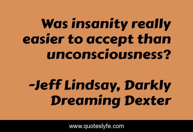 This page presents the quote "Was insanity really easier to accept than unconsciousness?". Author of this quote is Jeff Lindsay, Darkly Dreaming Dexter. This quote is about dexter, acceptance, insanity,.