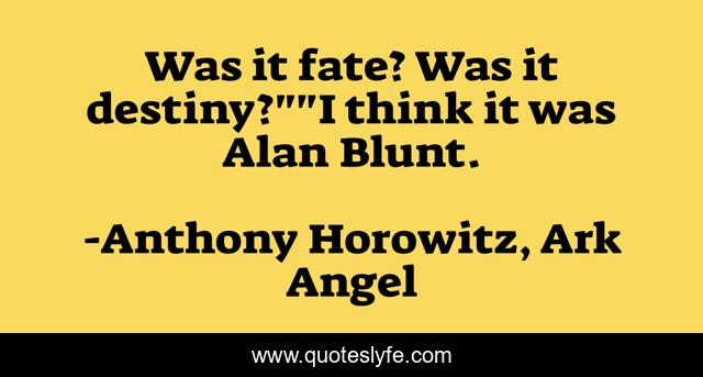This page presents the quote "Was it fate? Was it destiny?""I think it was Alan Blunt.". Author of this quote is Anthony Horowitz, Ark Angel. .