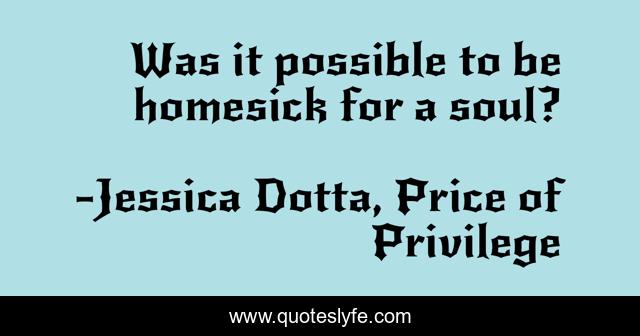 This page presents the quote "Was it possible to be homesick for a soul?". Author of this quote is Jessica Dotta, Price of Privilege. This quote is about enthusiasm, fiction, history, inspirational, victorian-era,.