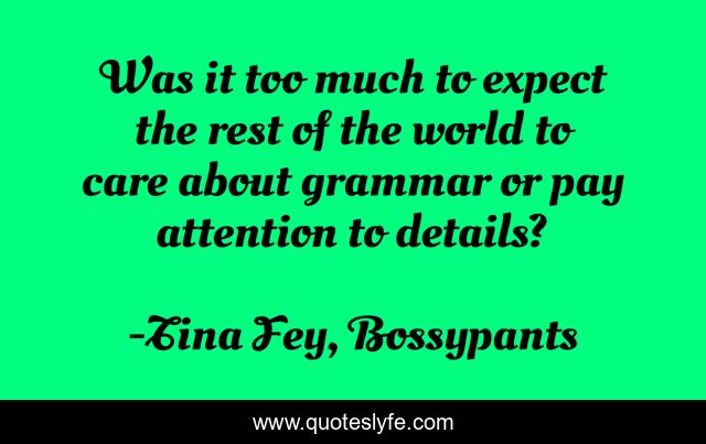 This page presents the quote "Was it too much to expect the rest of the world to care about grammar or pay attention to details?". Author of this quote is Tina Fey, Bossypants. This quote is about dad, father, grammar, language, literacy,.