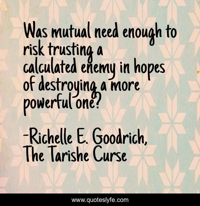 "Richelle E. Goodrich, The Tarishe Curse Quotes." Quoteslyfe.com, 2025. Fri. 05 Dec. 2025. <https://www.quoteslyfe.com/quote/Was-mutual-need-enough-to-risk-trusting-189410>.