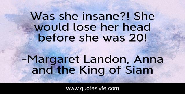 "Margaret Landon, Anna and the King of Siam Quotes." Quoteslyfe.com, 2025. Sat. 06 Dec. 2025. <https://www.quoteslyfe.com/quote/Was-she-insane-She-would-lose-her-246454>.