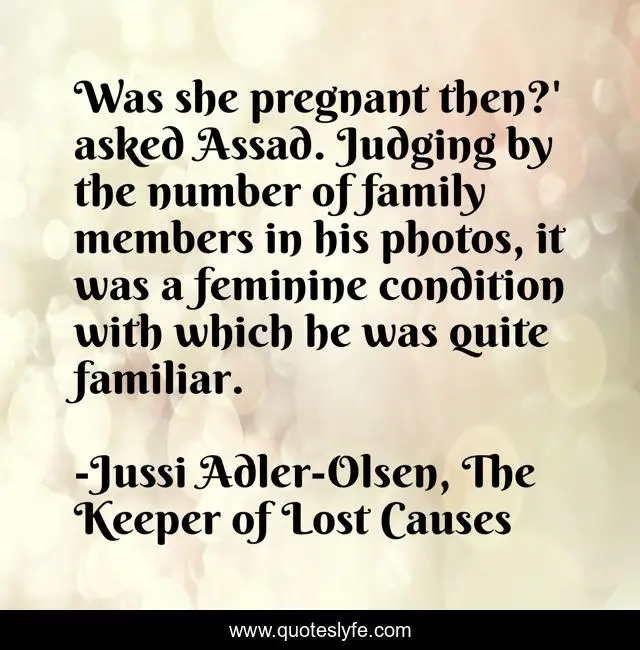 "Jussi Adler-Olsen, The Keeper of Lost Causes Quotes." Quoteslyfe.com, 2025. Sun. 07 Dec. 2025. <https://www.quoteslyfe.com/quote/Was-she-pregnant-then-asked-Assad-Judging-41599>.