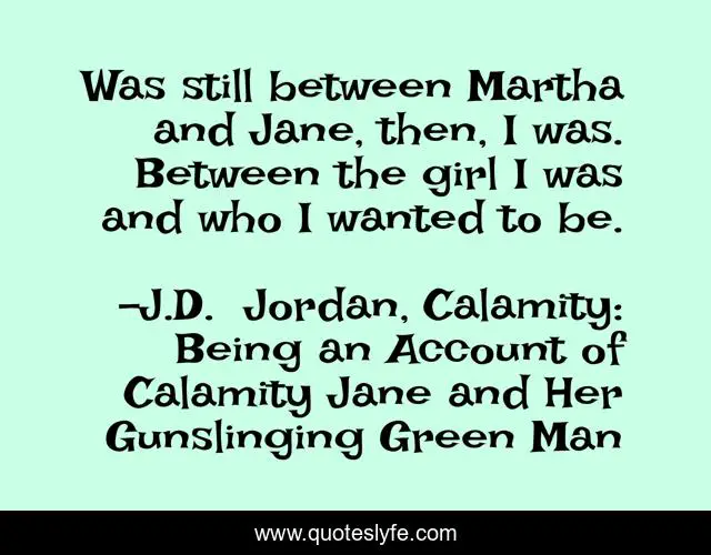 "J.D. Jordan, Calamity: Being an Account of Calamity Jane and Her Gunslinging Green Man Quotes." Quoteslyfe.com, 2025. Fri. 05 Dec. 2025. <https://www.quoteslyfe.com/quote/Was-still-between-Martha-and-Jane-then-144172>.