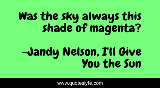 "Jandy Nelson, I'll Give You the Sun Quotes." Quoteslyfe.com, 2025. Sun. 07 Dec. 2025. <https://www.quoteslyfe.com/quote/Was-the-sky-always-this-shade-of-66193>.