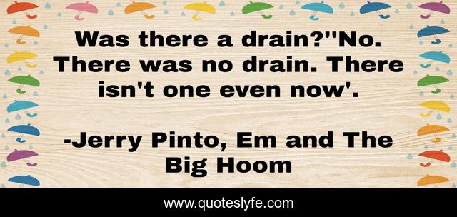 This page presents the quote "Was there a drain?''No. There was no drain. There isn't one even now'.". Author of this quote is Jerry Pinto, Em and The Big Hoom. .