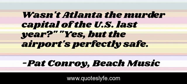 This page presents the quote "Wasn't Atlanta the murder capital of the U.S. last year?" "Yes, but the airport's perfectly safe.". Author of this quote is Pat Conroy, Beach Music. This quote is about airport-security, terrorism, murder, crime,.