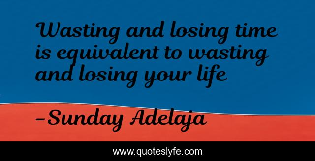 This page presents the quote "Wasting and losing time is equivalent to wasting and losing your life". Author of this quote is Sunday Adelaja. This quote is about life, blessing, finance, money, work, time-management, time-maximization, job, jobless,.