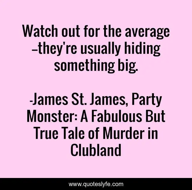 This page presents the quote "Watch out for the average--they're usually hiding something big.". Author of this quote is James St. James, Party Monster: A Fabulous But True Tale of Murder in Clubland. This quote is about individuality, strange, unique,.