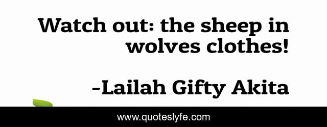 "Lailah Gifty Akita Quotes." Quoteslyfe.com, 2025. Fri. 05 Dec. 2025. <https://www.quoteslyfe.com/quote/Watch-out-the-sheep-in-wolves-clothes-84611>.