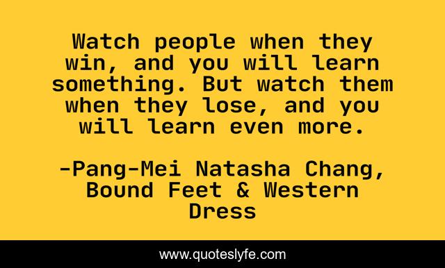 "Pang-Mei Natasha Chang, Bound Feet & Western Dress Quotes." Quoteslyfe.com, 2025. Fri. 05 Dec. 2025. <https://www.quoteslyfe.com/quote/Watch-people-when-they-win-and-you-123102>.