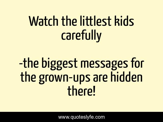 "the biggest messages for the grown-ups are hidden there! Quotes." Quoteslyfe.com, 2025. Fri. 05 Dec. 2025. <https://www.quoteslyfe.com/quote/Watch-the-littlest-kids-carefully-99661>.