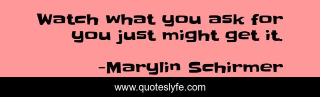 "Marylin Schirmer Quotes." Quoteslyfe.com, 2025. Sat. 06 Dec. 2025. <https://www.quoteslyfe.com/quote/Watch-what-you-ask-for-you-just-28643>.