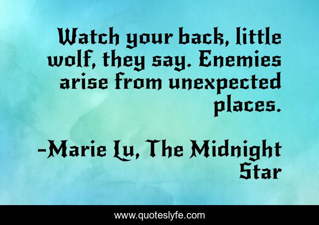 This page presents the quote "Watch your back, little wolf, they say. Enemies arise from unexpected places.". Author of this quote is Marie Lu, The Midnight Star. .