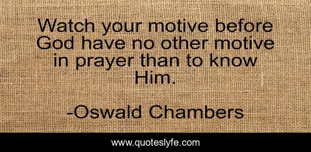 This page presents the quote "Watch your motive before God have no other motive in prayer than to know Him.". Author of this quote is Oswald Chambers. .