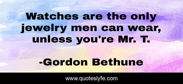 "Gordon Bethune Quotes." Quoteslyfe.com, 2025. Mon. 08 Dec. 2025. <https://www.quoteslyfe.com/quote/Watches-are-the-only-jewelry-men-can-326496>.