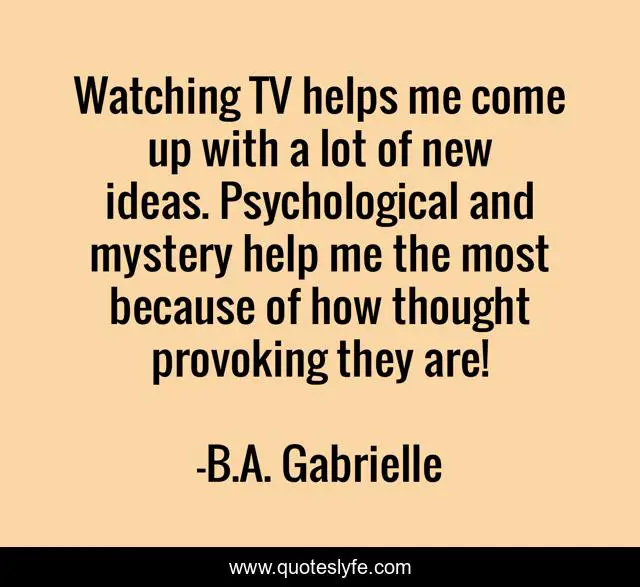 This page presents the quote "Watching TV helps me come up with a lot of new ideas. Psychological and mystery help me the most because of how thought provoking they are!". Author of this quote is B.A. Gabrielle. .