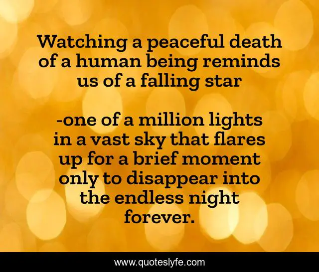 This page presents the quote "Watching a peaceful death of a human being reminds us of a falling star". Author of this quote is one of a million lights in a vast sky that flares up for a brief moment only to disappear into the endless night forever.. .