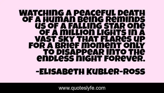 "Elisabeth Kubler-Ross Quotes." Quoteslyfe.com, 2025. Sat. 06 Dec. 2025. <https://www.quoteslyfe.com/quote/Watching-a-peaceful-death-of-a-human-295063>.