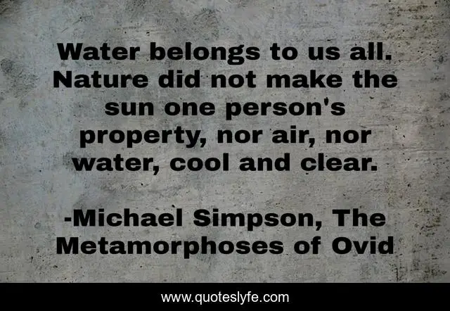 "Michael Simpson, The Metamorphoses of Ovid Quotes." Quoteslyfe.com, 2025. Sat. 06 Dec. 2025. <https://www.quoteslyfe.com/quote/Water-belongs-to-us-all-Nature-did-232304>.