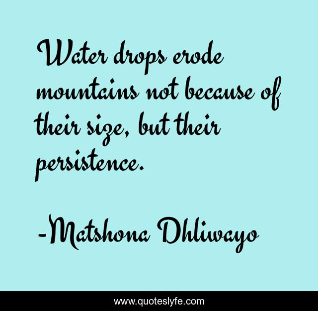 "Matshona Dhliwayo Quotes." Quoteslyfe.com, 2025. Fri. 05 Dec. 2025. <https://www.quoteslyfe.com/quote/Water-drops-erode-mountains-not-because-of-57989>.