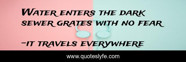 This page presents the quote "Water enters the dark sewer grates with no fear". Author of this quote is it travels everywhere. .